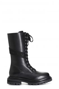 Women's 3/4 length leather lace-up ankle boot embellished with a distinctive black cafènoir logo ribbon. the insole is leather.