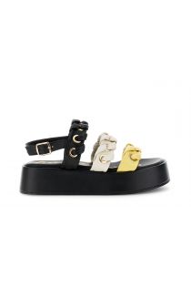 3-strap sandals in nappa leather with eyelets and threading multi yellow