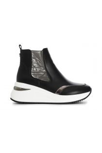Women's ankle boot in coated leather with nylon inserts on elastics. internal footbed.