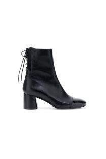 Leather-look ankle boots with a patent toe and a lace-up back. A 6 cm block heel. Couture design and bold details for an urban-chic style that won't go unnoticed.