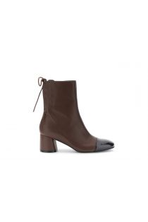 Leather-look ankle boots with a patent toe and a lace-up back. A 6 cm block heel. Couture design and bold details for an urban-chic style that won't go unnoticed.
