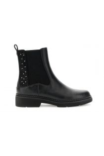 Women's black faux leather ankle boots with elastic sides. Rhinestone and stud embellishments on the back add a touch of glam. Leather insole. 3.5 cm heel.