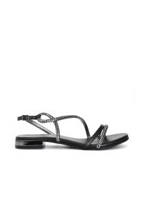 asymmetric sandals with heat-sealed rhinestones black