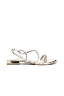 Asymmetric sandals with heat-sealed rhinestones. lining and insole are in leather. the heel is 1.6 cm.