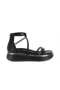 Asymmetrical platform sandals with thin straps embellished with micro-shine a back zip closure and a wrap-around design. a 3 cm platform and 4 cm sole are perfect for adding a modern sparkly touch to summer looks.