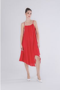 Women's summer dress with thin straps and an asymmetrical hem made of lightweight crinkle fabric. a flowing and fresh silhouette ideal for summer looks vacations and chic informal occasions. the model is 175 cm tall and wears a size s. fit: comfort.