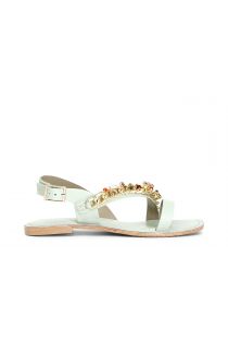 Asymmetrical leather sandals with chain.