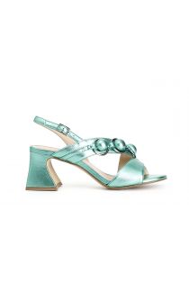 asymmetrical patent leather sandals green