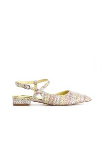 Slingback raffia effect ballet flats. asymmetrical strap. leather insole. 30 mm heel.