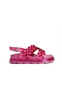 asymmetrical sandals with micro-rhinestone threading hot pink