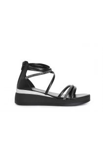 Asymmetrical sandals with reinforced heel and rhinestones.