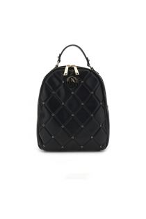 Backpack with diamond quilt with matching rivet application and two-tone cafènoir logo. two internal pockets one with zip closure and the other open. double opening with zip. adjustable shoulder straps.