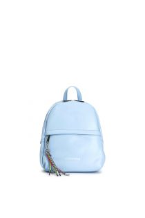 Backpack with embroidered logo and personalised key ring with charm. large zipped front pocket. backpack with single compartment. adjustable shoulder straps.