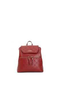 Backpack with flap and front pockets with zip puller with logo lettering. all over embossed logo print. internal zip pocket. zipper and magnet closure. adjustable shoulder straps.