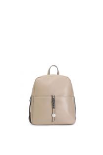Backpack with front pocket and metal lettering detail. zipper closure. adjustable shoulder straps.