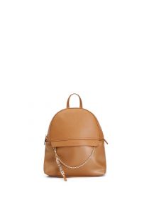 Backpack in smooth saffiano leather. front pocket with zip puller embellished with small metal letters and removable chain. zip closure. adjustable shoulder straps.