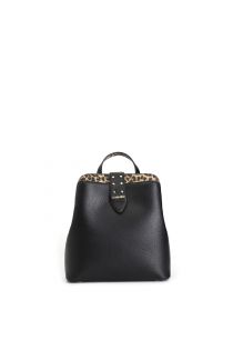 Rigid backpack with zip and printed pattern. backpack embellished with buckle gold micro studs and logo. adjustable shoulder straps.