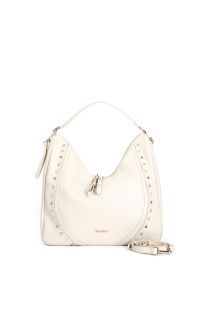 bag with cabochon stones, mini rivets, padded handle and shoulder strap ivory