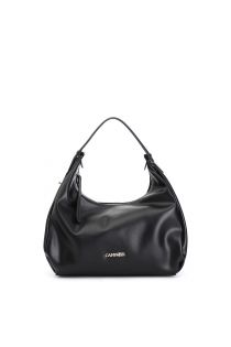 Bag with closure accessory on the handle. single compartment and internal zip pocket. zipper closure.