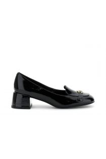 Ballerina with rounded toe in naplak leather with tray and personalized accessory. 45 mm high banded heel. the insole is in leather. ideal in combination with multiple looks from morning to evening.