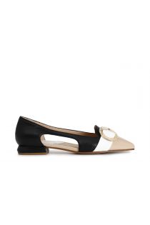 Leather ballet flats with decorative buckle. the tapered tip has a patent leather effect. 15mm-high leather heel.