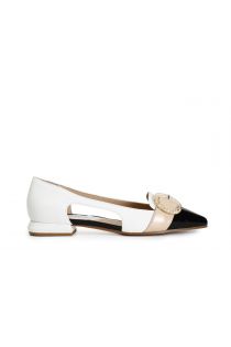 Leather ballet flats with decorative buckle. the tapered tip has a patent leather effect. 15mm-high leather heel.