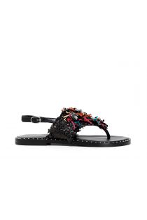 Sandals with double wedge covered in leather with California construction method. Colour block upper in calfskin leather.