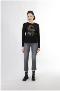 Long-sleeved t-shirt in stretch cotton with print and embroidery reproducing our slogan "be noir".