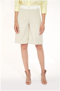 Fine, delicate Bermuda shorts with contrasting belt, side pockets and trendy wide leg