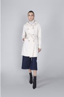 Single-breasted, bi-material padded trench coat with a detachable, iridescent nylon inner bib and a self-tie trench-style belt. Perfect for casual wear and comfort. Regular fit. The model is 173 cm tall and is wearing a size S.