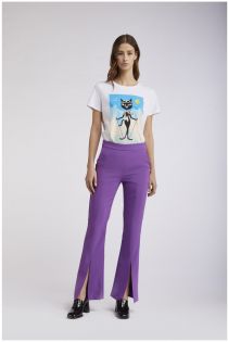 bi-stretch bell-bottom pants with front slit purple