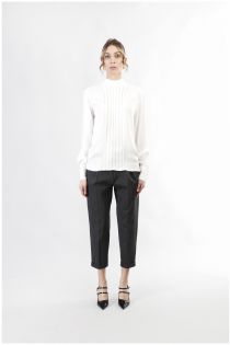 Long-sleeved crew-neck blouse with pleats on the front. sash around the neck with knot on the back. made of viscose georgette. to be combined with denim and worn with a blazer to create casual and more refined looks.