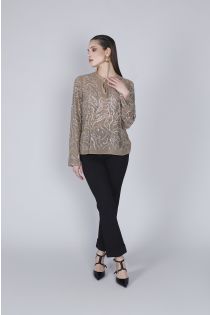 Elegant georgette blouse embroidered with rhinestones, perfect for refined and luminous looks. Regular fit. The model is 172 cm tall and wears size S.
