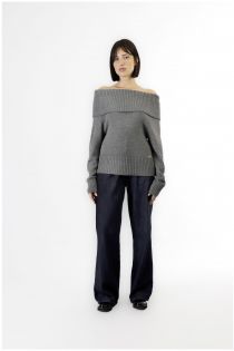 Wool blend sweater with a turned-up bateau neckline that leaves the shoulders uncovered. garment with a casual and modern touch. perfect for everyday wear.