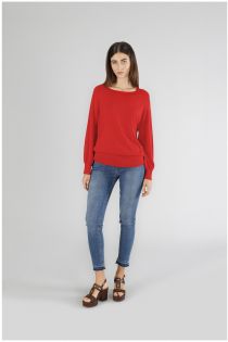T-shirt with boat neckline and long sleeves. made of viscose yarn. perfect basic item to combine with a pair of jeans or a maxi skirt.