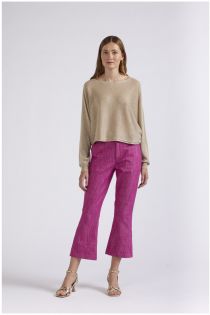 Boat-neck sweater and long batwing sleeves in viscose blend yarn with lurex