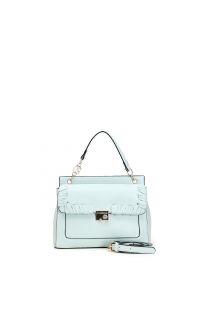 Medium-sized bowling bag with the front flap finished with statement faux leather threading. Customised CN hardware on the handle and closure embellished with rhinestones.