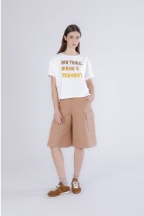 box-shaped t-shirt with the slogan "gin and tonic, bikini and sunsets" off white