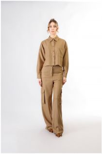 Short shirt with patch pockets in grisaille fabric. box-shaped long-sleeved garment. wardrobe must-have to wear during the day with a pair of coordinated trousers or jeans.