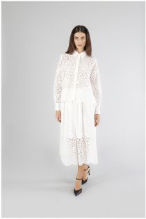 Long-sleeved shirt made of broderie anglaise fabric. shirt with a romantic and feminine style matches the coordinated skirt or trousers.