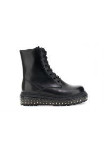 Brushed faux leather ankle boots with elastic sides. Leather insole and 3.5 cm platform sole decorated with gold and black studs. Comfort and bold style.