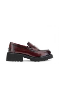 Women's brushed leather loafers with chunky soles. Leather lining and insole for superior comfort. 4.5 cm heel. Elegance and assertiveness for every urban look.
