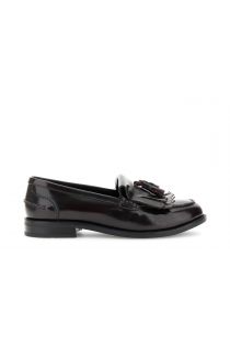 brushed leather moccasins with fringes bordeaux