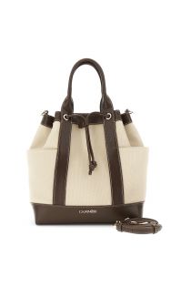 bucket bag with canvas-effect handles and contrasting leather-effect trim dark brown/beige