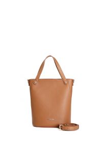 Bucket bag in refined garnet material logoed stud details and adjustable and removable shoulder strap for a practical and elegant style.
