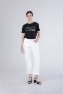 Bootcut jeans in stretch bull denim with a feminine and slim fit. they feature a regular waist slightly flared leg and comfortable fabric that flatters the figure. ideal for casual and versatile looks. the model is 171 cm tall and wears a size s. fit: bootcut.