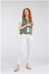 Bull denim canvas gilet with ethnic ribbon applied on the collar