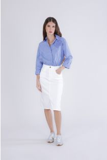 Stretch denim skirt with a feminine and versatile design. midi-length skirt with a front slit that slims the figure and ensures comfort during movement. ideal for casual or urban chic looks. the model is 175 cm tall and wears a size s. fit: regular.