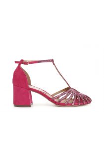 Microfibre and rhinestone 't' cage sandals with ankle strap and heel h. 60mm