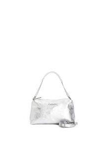 camera bag in metallic leather with chain handle with handle and tassel silver